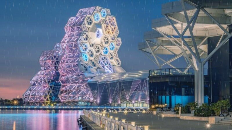 衛武營國家藝術文化中心座落於高雄市鳳山區,相鄰衛武營都會公園,基地總面積9.9公頃,其中建物面積共有3.3公頃。音波式的流線外型與白色波浪的自由曲線,以流暢的弧度滑入地面,與周遭環境巧妙結合。由荷蘭建築師法蘭馨・侯班以衛武營的老榕樹群為靈感設計,樹齡過百的榕樹群,盤根錯節、枝枒糾結,虛實互應的景象,開啟了建築師賦予衛武營具穿透感與呼吸節奏的想像,整棟建築物讓民眾能四面八方、毫無阻礙的走進場館,而由廳院屋頂延伸的通透空間,則是向眾人24 小時開放的榕樹廣場,民眾能夠自由穿梭其中、自在地活動與休憩。一座無圍欄的藝術中心,不僅有助於氣流流動,也創造了劇場與生活零距離的空間感。衛武營國家藝術文化中心於2018年10月13日啟用開幕,積極發展南臺灣的表演藝術環境,成為接軌國際的重要藝術基地。